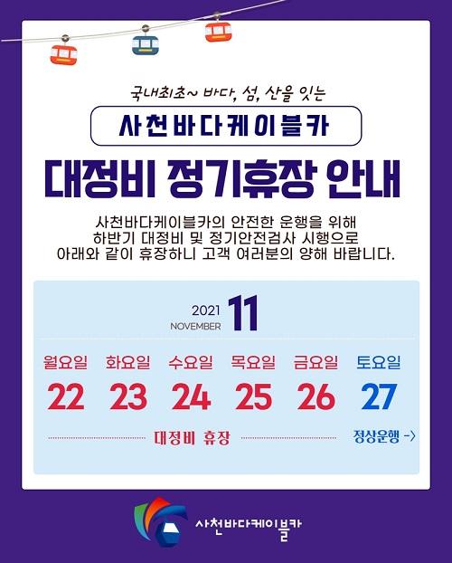 [È£ÅÚ°ü±¤·¹Á®½Å¹®´º½º=¼­È¿°æ ±âÀÚ] »çõ½Ã½Ã¼³°ü¸®°ø´ÜÀº »çõ¹Ù´ÙÄÉÀ̺íÄ« ´ëÁ¤ºñ¿Í Á¤±â ¾ÈÀüÁ¡°ËÀ» À§ÇØ ¿À´Â 22ÀϺÎÅÍ 26ÀϱîÁö ÈÞÀåÇÕ´Ï´Ù. °ø´ÜÀº ÀÌ ±â°£¿¡ °¢Á¾ ½Ã¼³ÀÇ Á¾ÇÕÀûÀÎ Á¡°Ë°ú Á¤ºñ¸¦ ÇÔ²² ÁøÇàÇÕ´Ï´Ù. °í°´µéÀÇ ÄèÀûÇÑ Å¾½Â ȯ°æÀ» À§ÇØ ÄÉºó ¼¼¡¦
